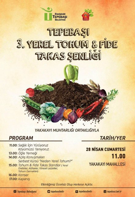 Eskişehir Tepebaşı Belediyesi Sağlıklı Kent Konseyi’nin düzenlediği 'Yerel Tohum ve Fide Takas Şenliği'nin 3.’sü, 28 Nisan Cumartesi günü Yakakayı Mahallesi’nde gerçekleşecek.