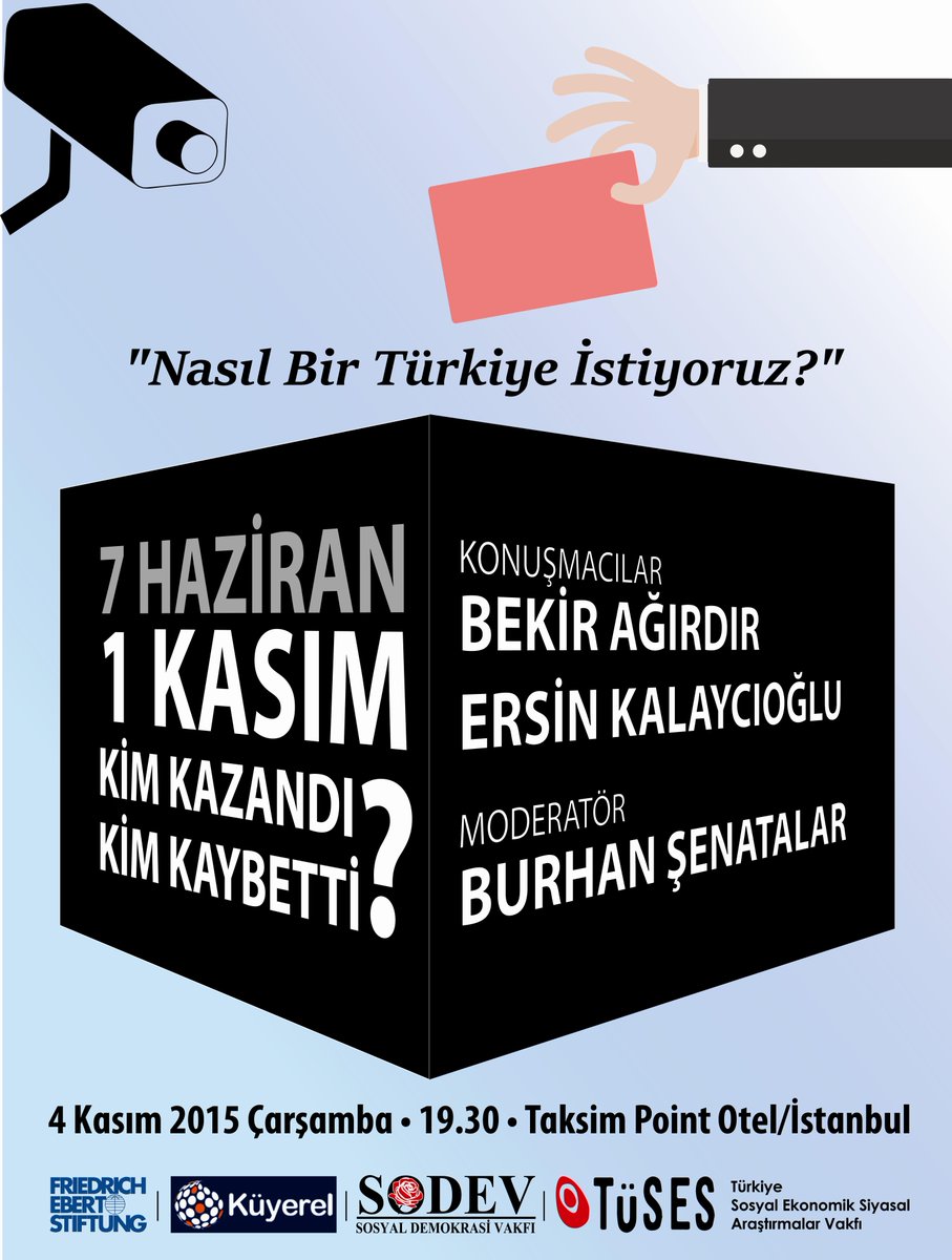 SODEV'in FES, KÜYEREL ve TÜSES ile birlikte düzenledikleri "Nasıl bir Türkiye istiyoruz?" toplantı serisinden, "7 Haziran / 1 Kasım: Kim Kazandı, Kim Kaybetti?" konulu paneli yarın.
