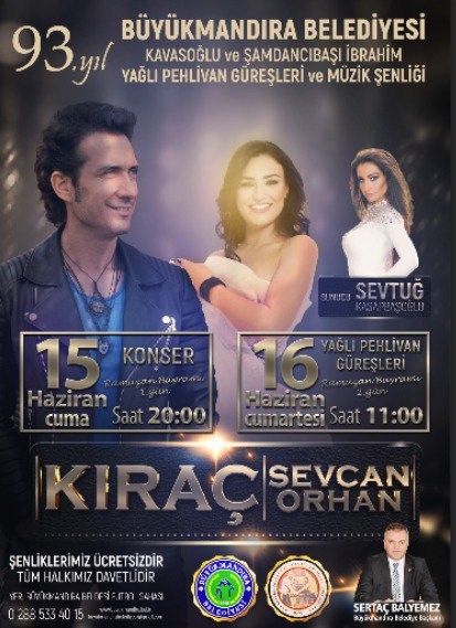 Büyükmandıra Beldesi futbol sahasında gerçekleştirilecek güreş ve konserlere katılımın ücretsiz olduğu öğrenildi.