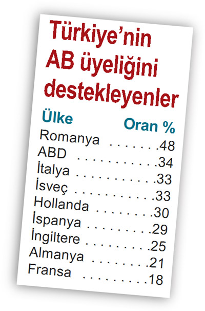 Türkiye’nin AB üyeliğinin olumlu olacağını düşünen Türklerin oranı geçen yıla göre 10 puanlık bir artışla yüzde 48’e ulaşsa da 2004’teki yüzde 73 seviyesinden çok uzak olmayı sürdürüyor. Yüzde 48 oranı da son dört yılın en iyi oranı olarak kayıtlara geçti.
