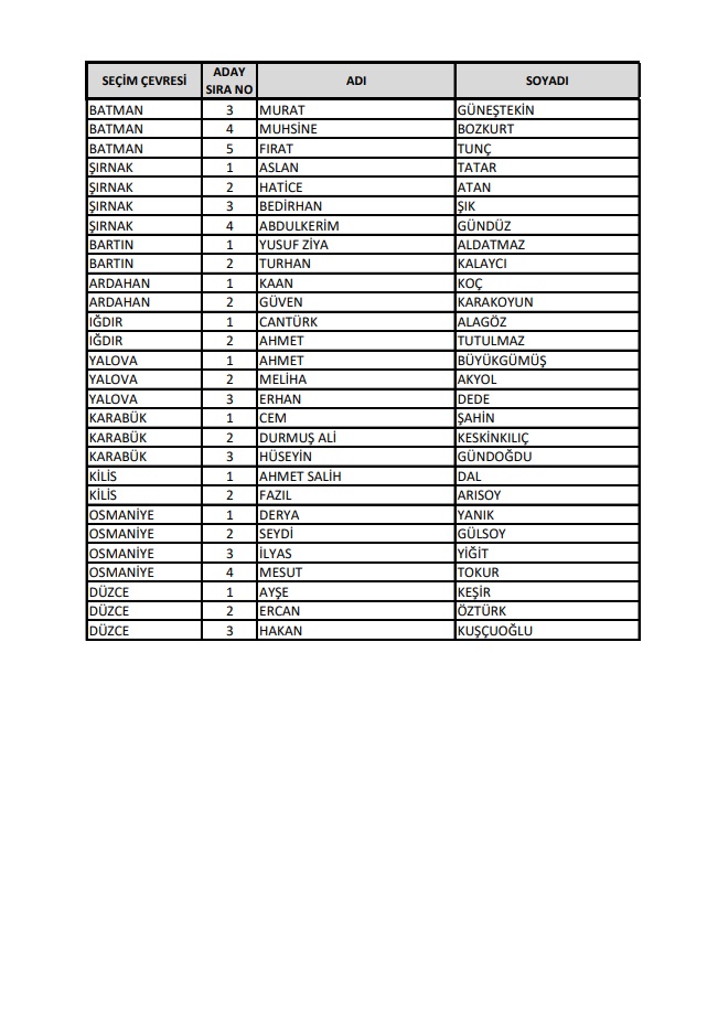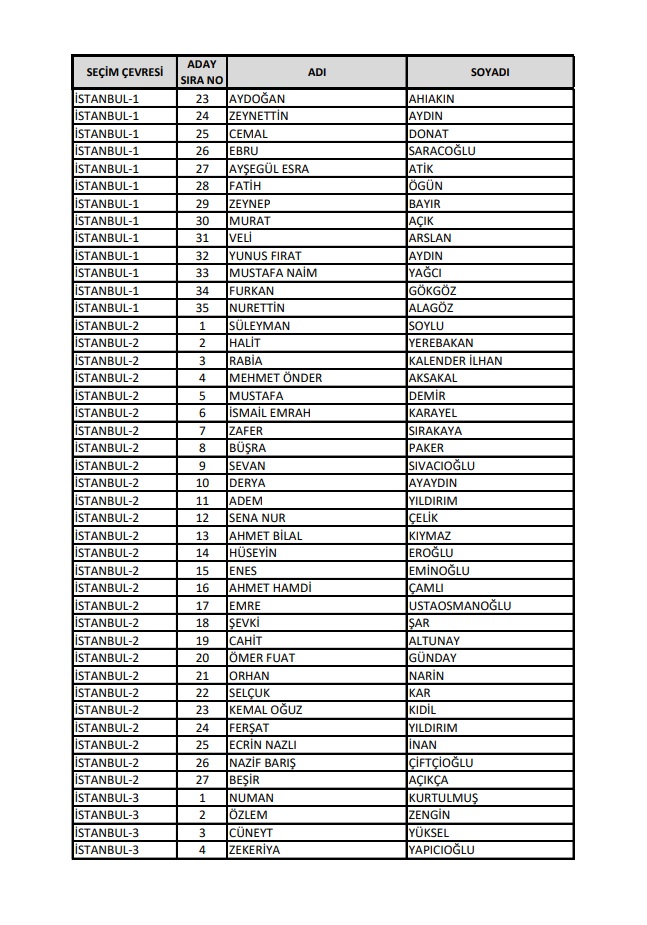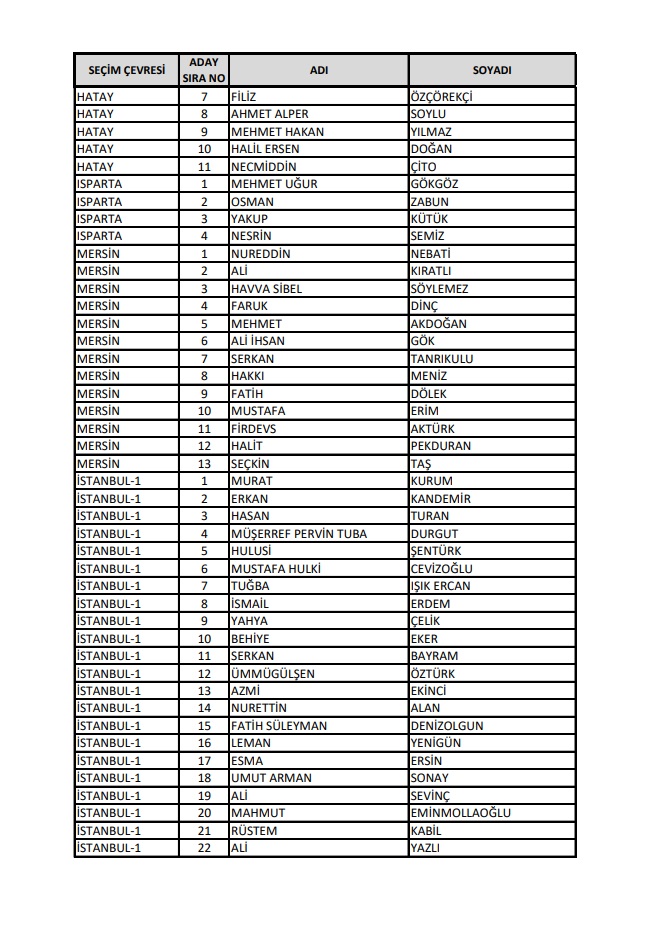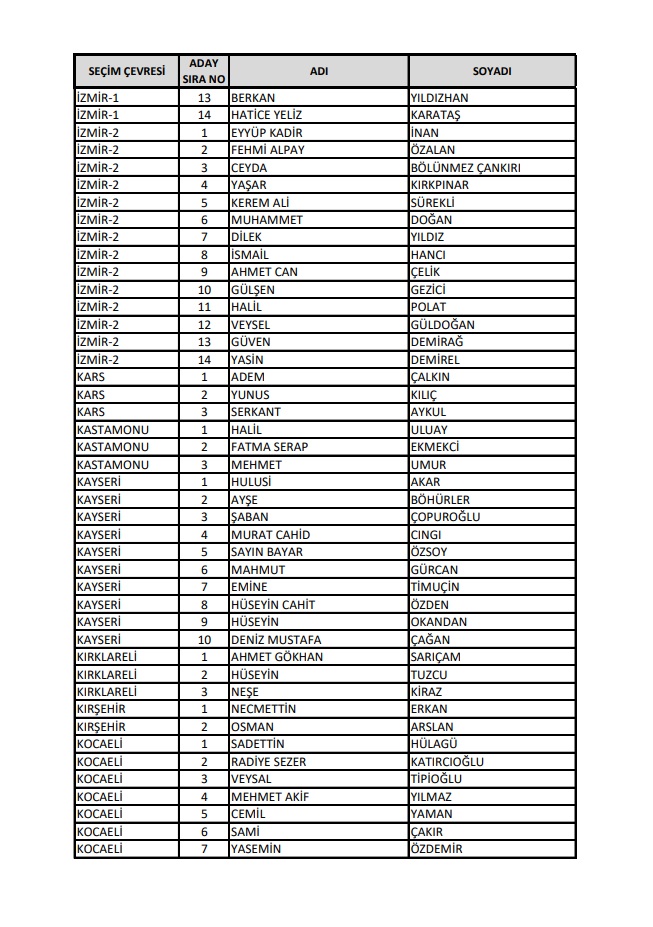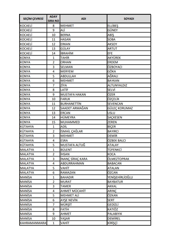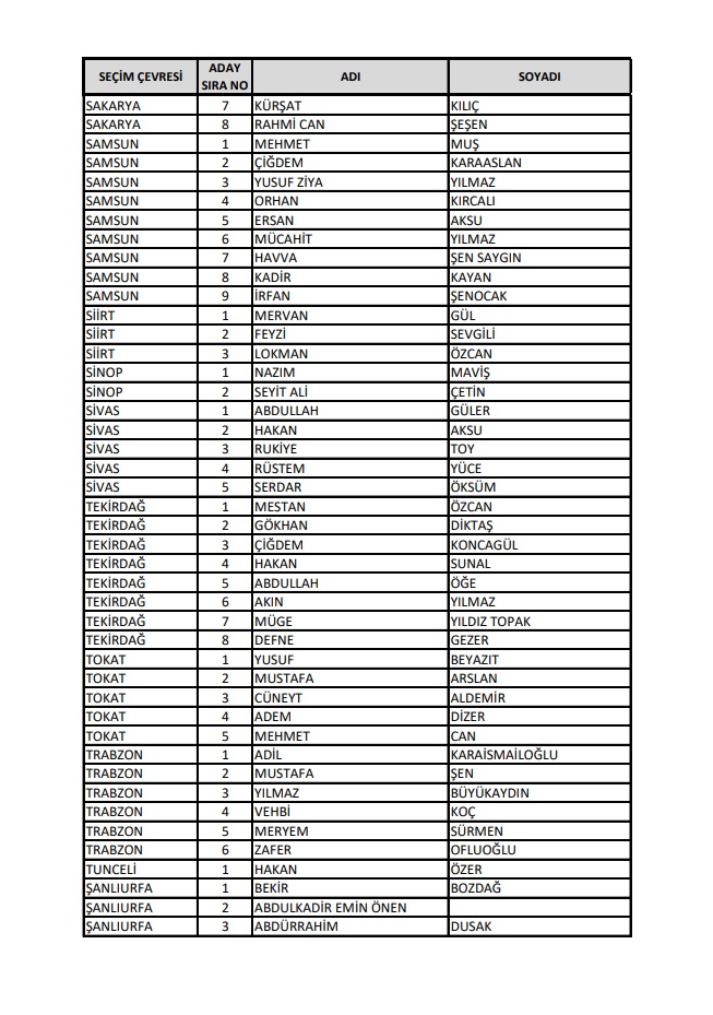 AKP'nin 28. Dönem Milletvekilleri Aday Listesi yayımlandı.