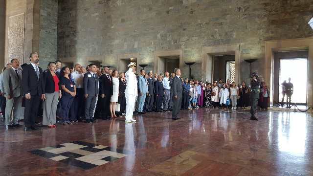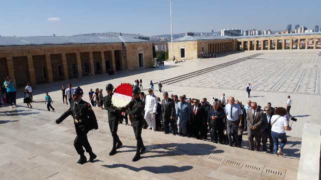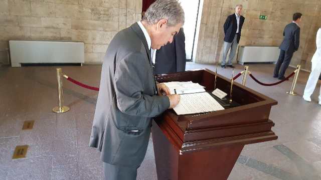 Heyet Aslanlı Yol'dan yürüyerek Atatürk'ün mozolesine ulaştı ve çelenk bıraktı. Burada 1 dakikalık saygı duruşunun ardından Misak-ı Milli Kulesi'ndeki Anıtkabir Özel Defteri'ni imzalayan heyet daha sonra Anıtkabir önünde hatıra fotoğrafı çektirdi.