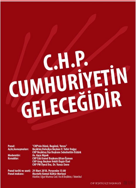 CHP Beşiktaş İlçe Başkanlığı 'CHP'nin Dünü, Bugünü, Yarını' konulu panel düzenliyor.