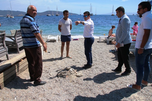 Pazar mesaisine ilk olarak Gümbet Mahallesi’nden başlayan Bodrum Belediye Başkanı Ahmet Aras, Zengin Hüseyin Sokak üzerinden plaja açılan yol çalışmalarını yerinde inceledi. Daha sonra Bardakçı Koyu’nda şikayete konu bir alanı inceleyen Aras, bir otele ait havuzun hemen yanından geçen yolun araç trafiğine kapatılması ile ilgili olarak Zabıta Müdürlüğü’nü harekete geçirdi.