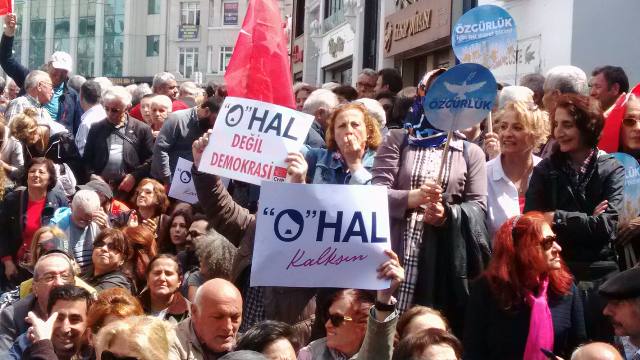 CHP İstanbul İl Başkanı Canan Kaftancıoğlu oturma eyleminin sonunda yaptığı konuşmada, "Her türlü baskıya rağmen bugün buraya geldiniz, hiçbir şey sizin karşınızda direnemez. OHAL'e karşı demokrasi demek için Taksim Meydanı'nda da bir araya geldik. 1 Mayıs'ta da işçinin emekçinin bayramını kutlamak için Maltepe'de olacağız" dedi.