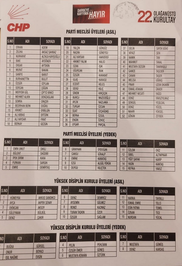 CHP 22. OLAĞANÜSTÜ PM LİSTESİ YEDEKLER İÇİN TIKLAYIN!