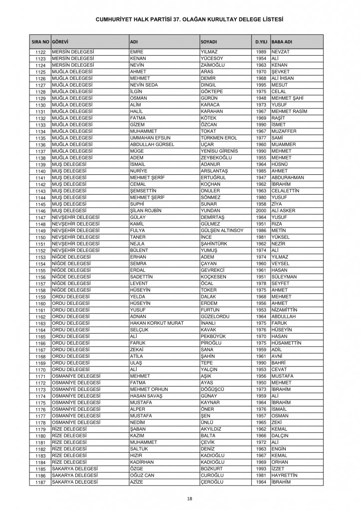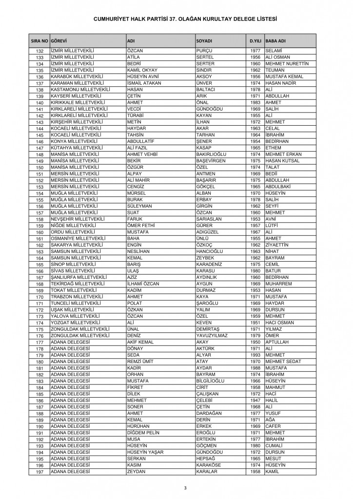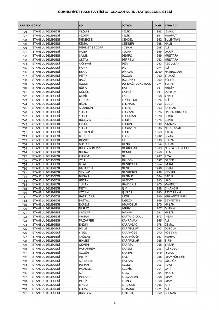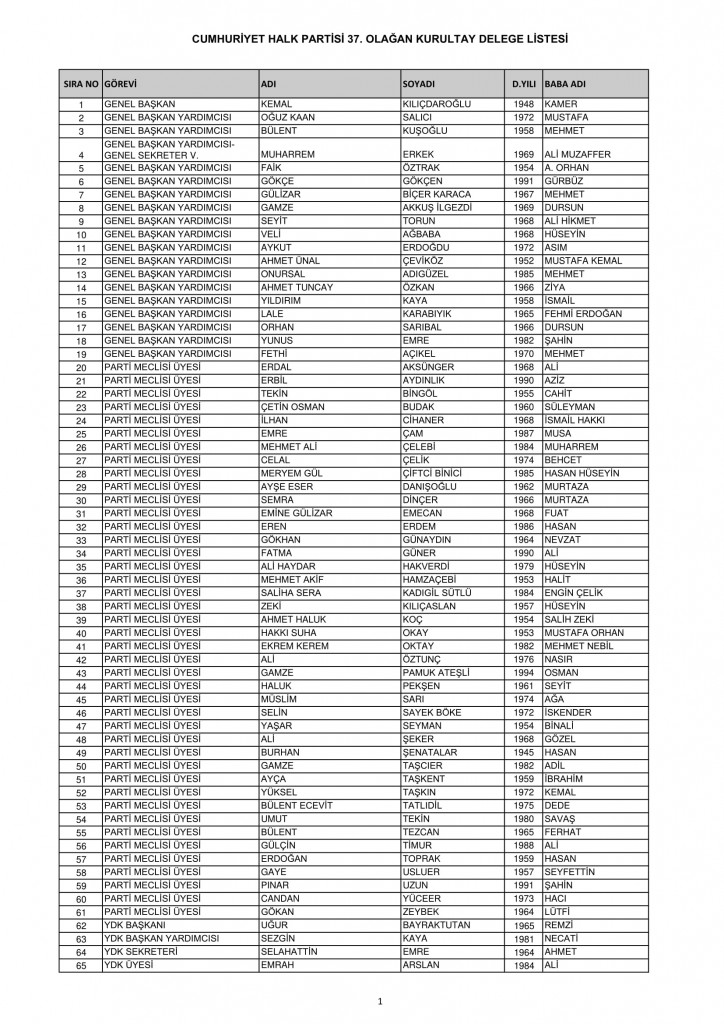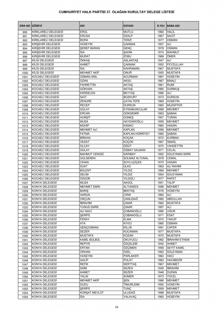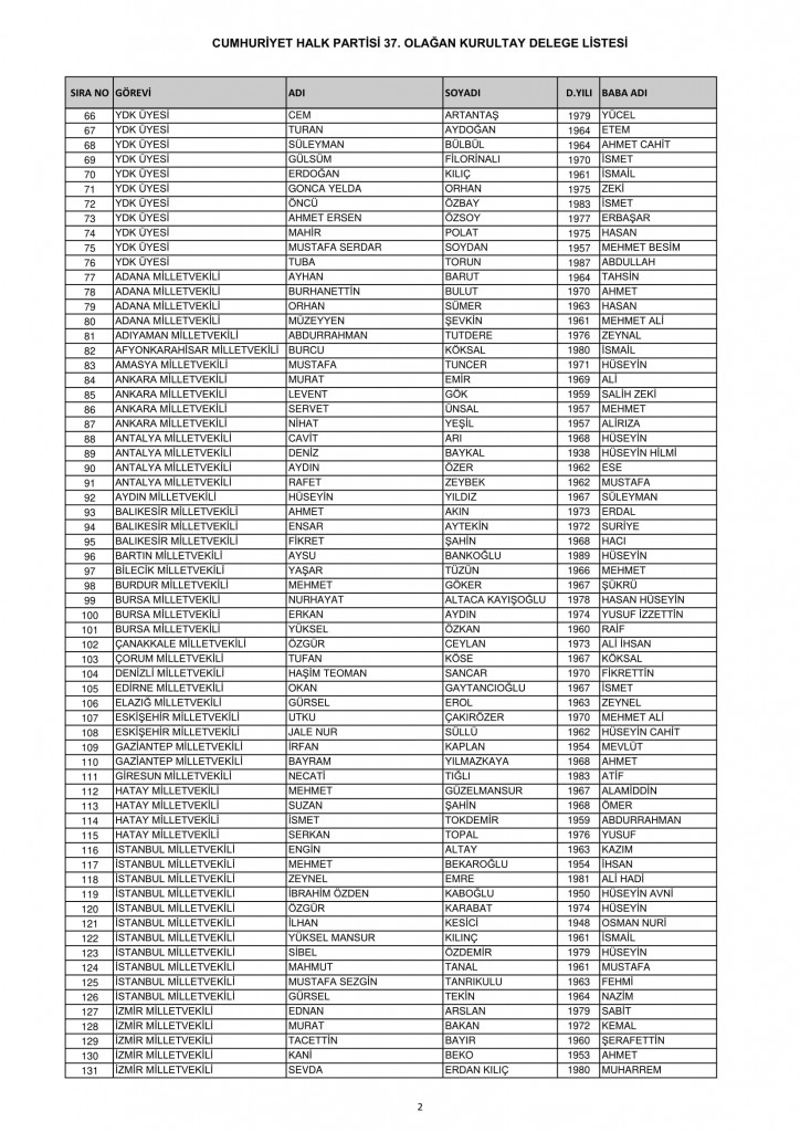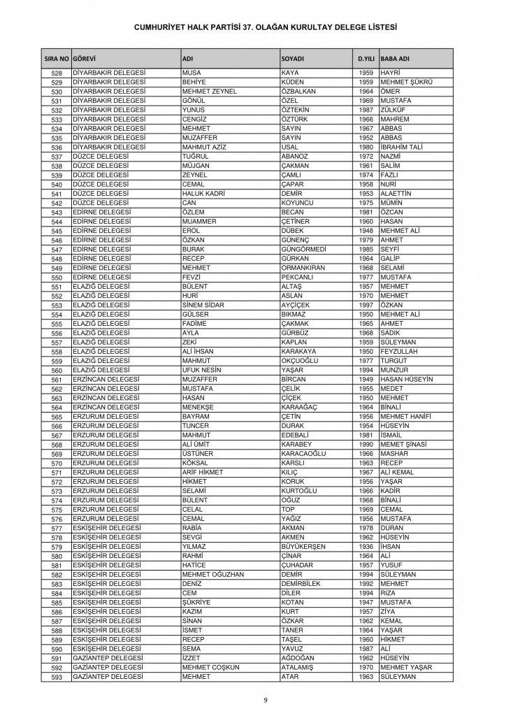 CHP 37. Olağan Kurultayında 25-26 Temmuz'da oy kullanacak kurultay delege listesi belli oldu