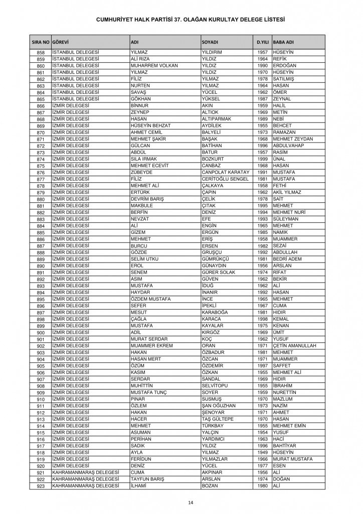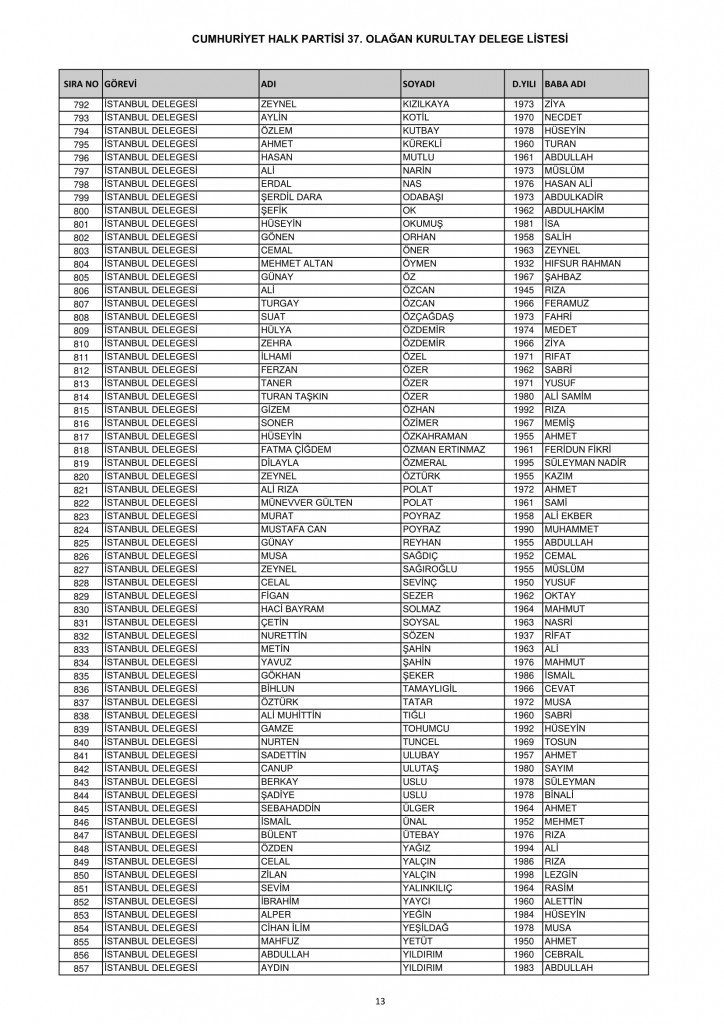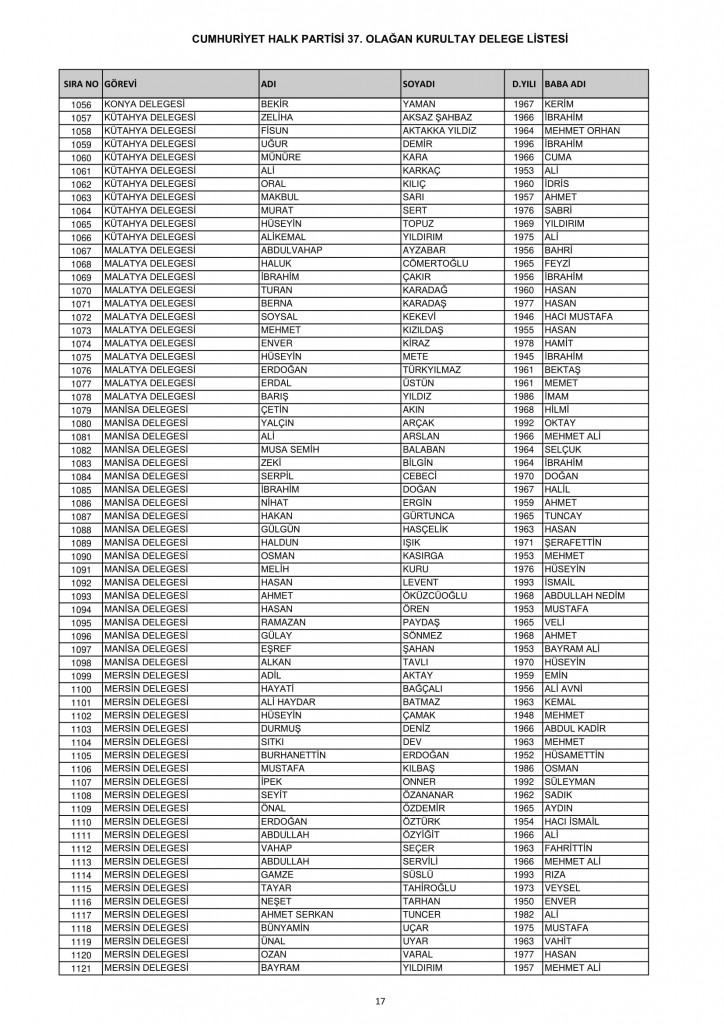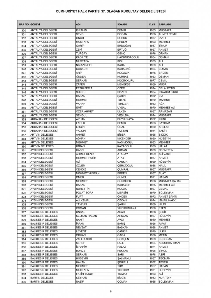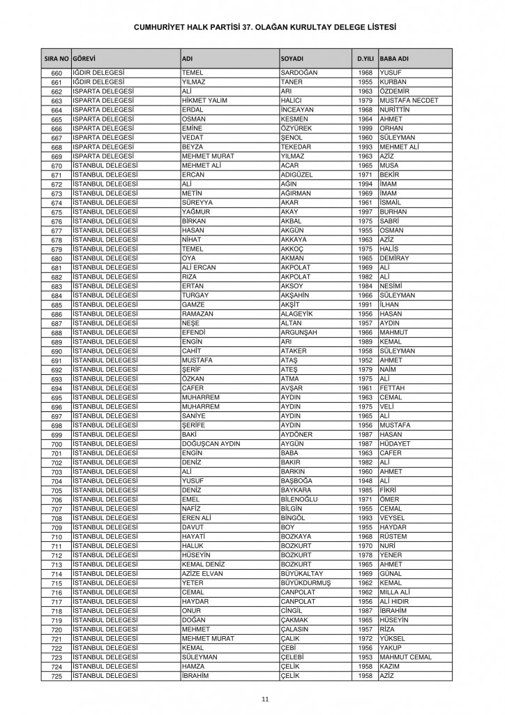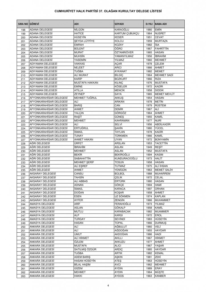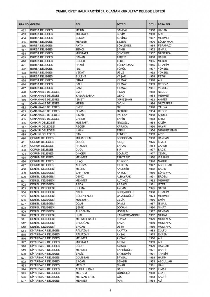 CHP 37. Olağan Kurultayında 25-26 Temmuz'da oy kullanacak kurultay delege listesi belli oldu