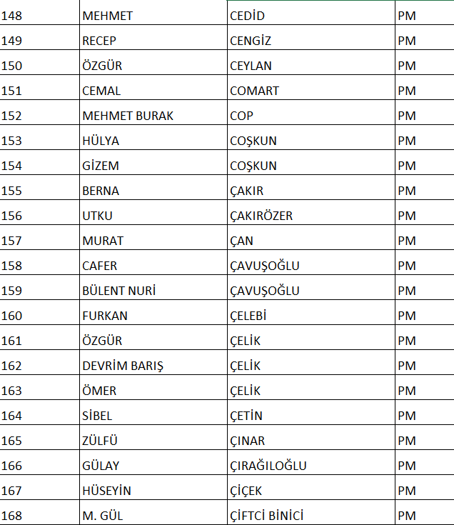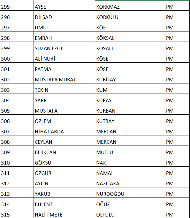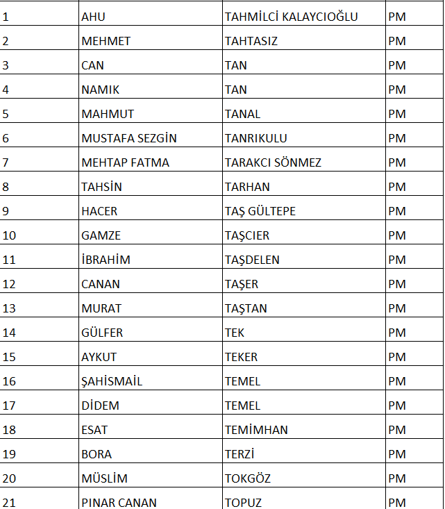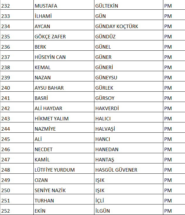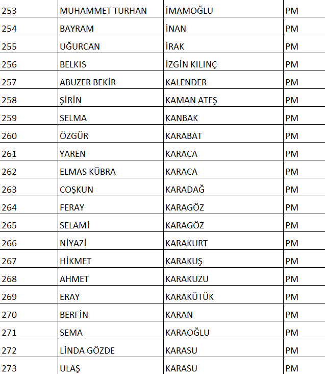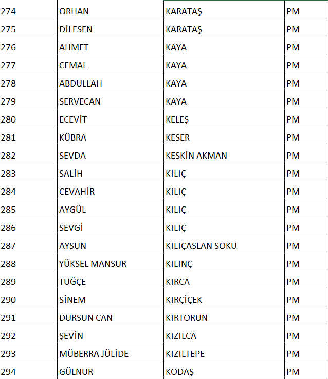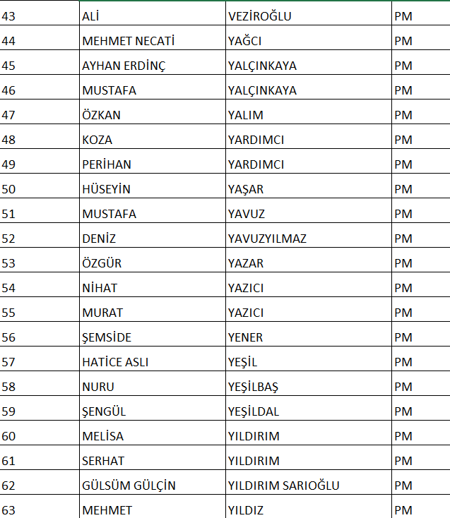 CHP NUMARALI PM ADAY LİSTESİ;