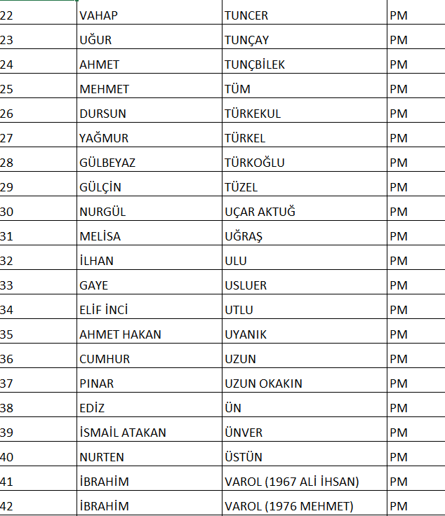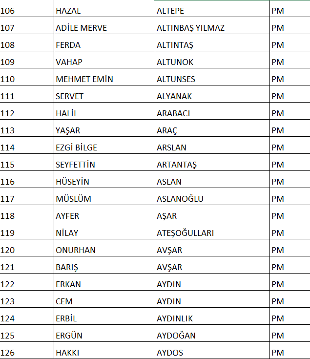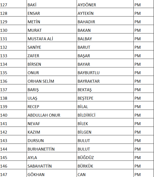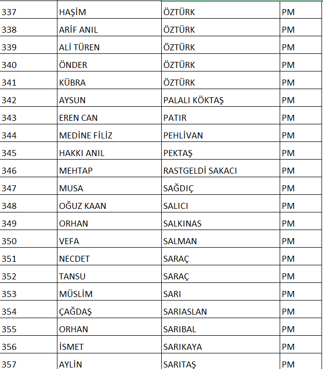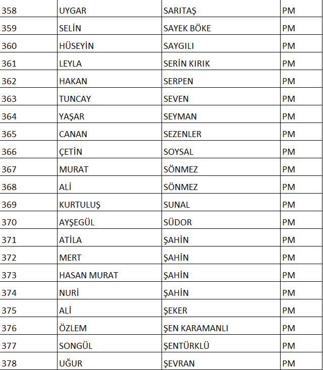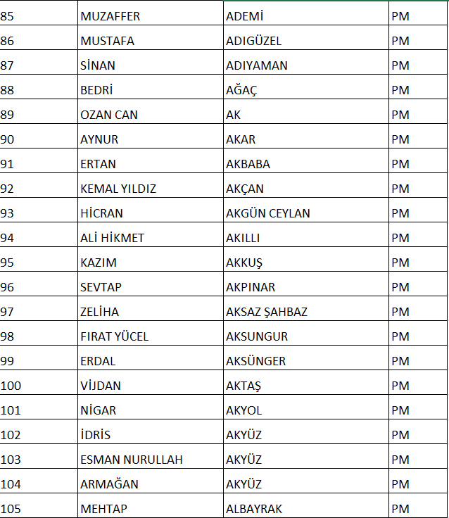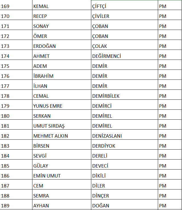 CHP NUMARALI PM ADAY LİSTESİ;
