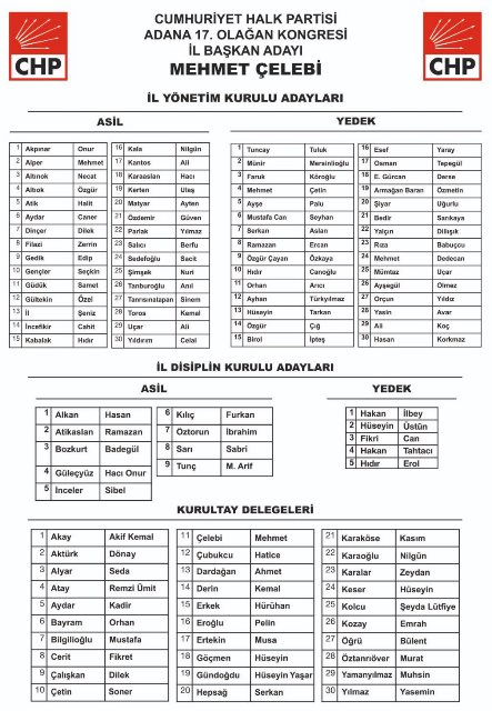 Mehmet Çelebi başkanlığındaki yeni CHP Adana İl yönetimi listesi:
