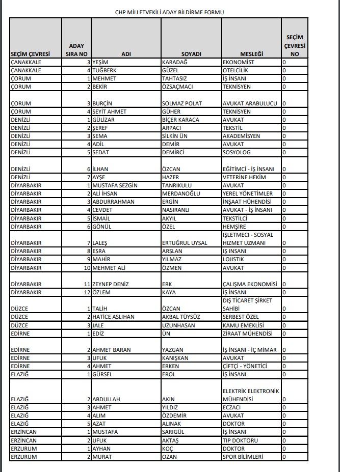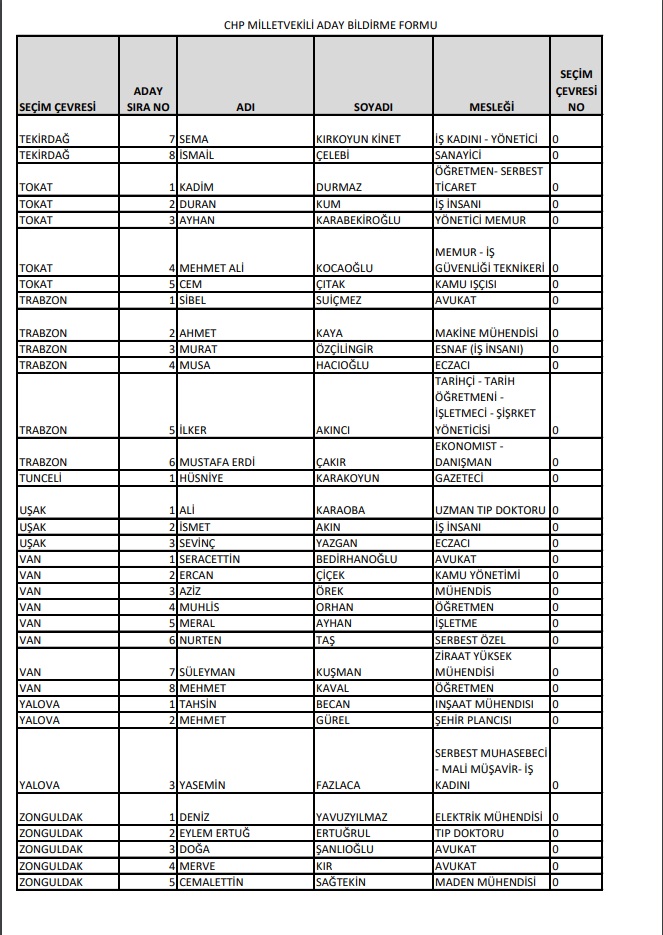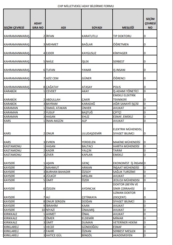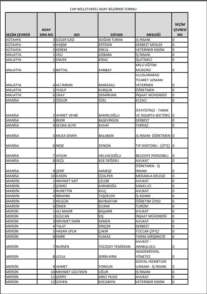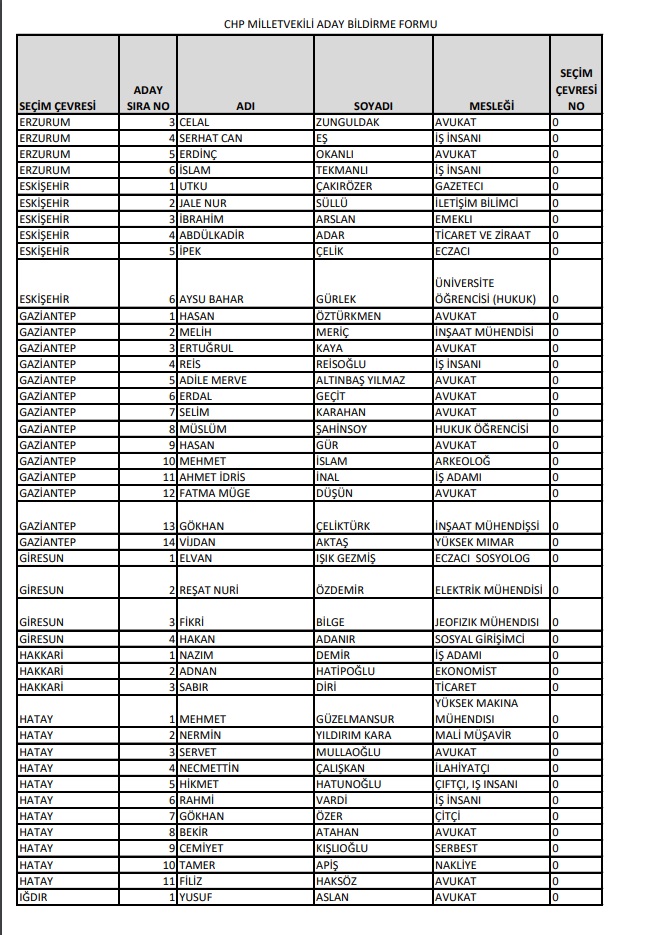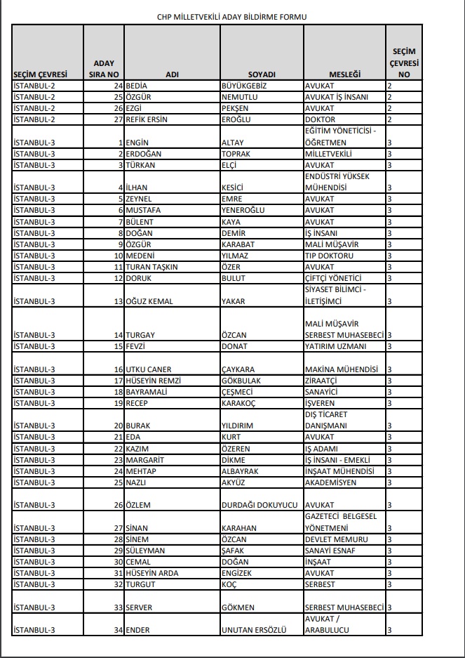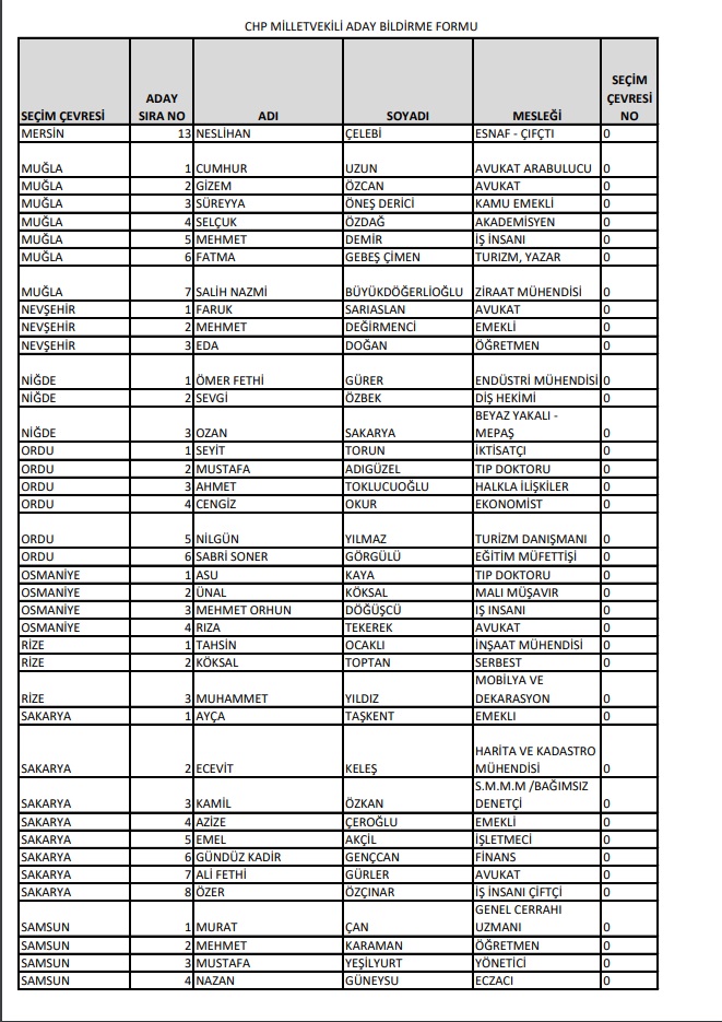Cumhuriyet Halk Partisi, 14 Mayıs'ta Millet İttifakı 28. Dönem YSK'ya verilen Milletvekili aday listesini yayımladı.