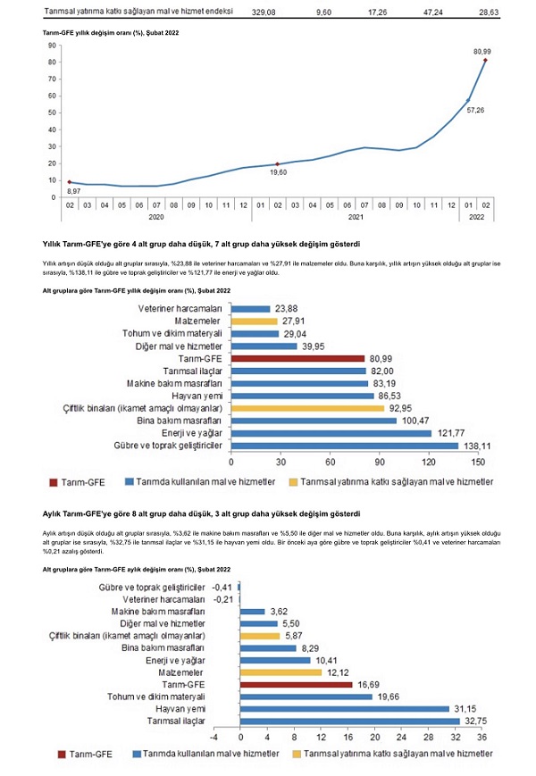 Kiloda 3 liralık (% 75) artış TÜİK’in gıda enflasyonu olan % 89’un gerisinde. Gübre fiyatı ise bırakalım piyasayı TÜİK’e göre bile bir yılda % 138 artmış durumda.