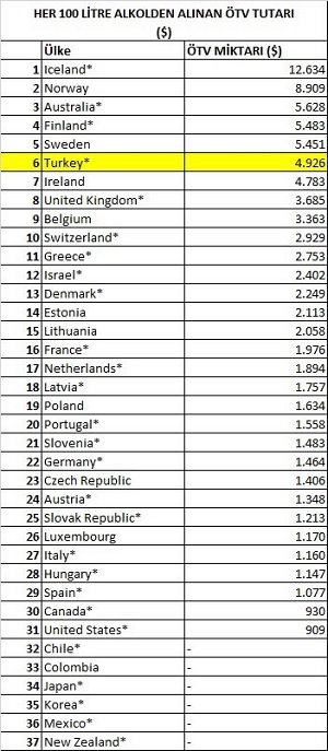 Türkiye OECD içerisinde alkollü içkileri ağır vergileyen ülkelerden biridir.
