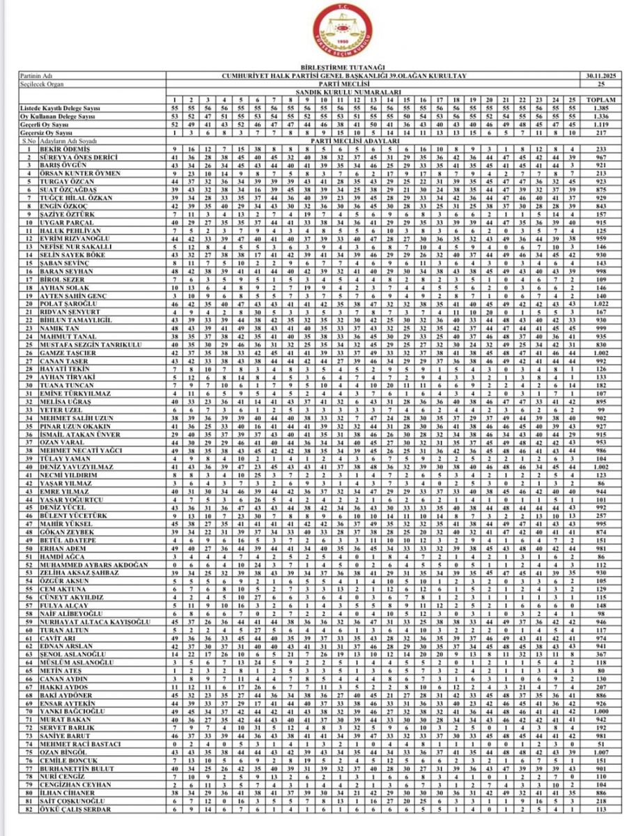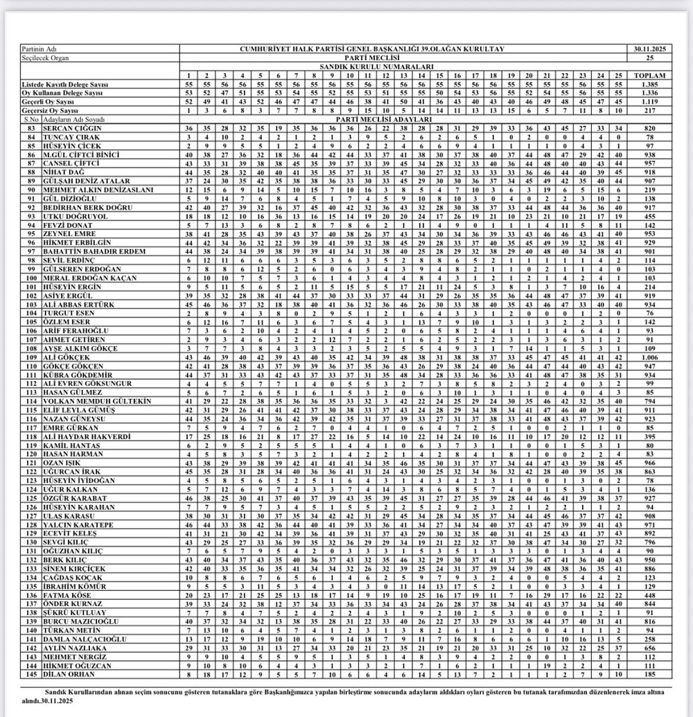 Cumhuriyet Halk Partisi’nin 39’uncu Olağan Kurultayı 3, gününde PM ve YDK seçimleri yapıldı. CHP Genel Başkanı Özgür Özel'in anahtar listesi delinmedi.