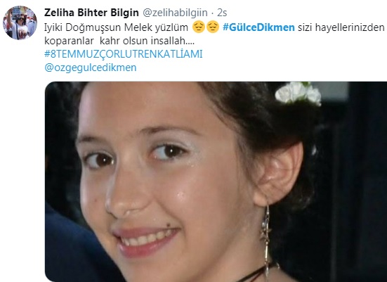 Çorlu Tren Katliamı'nda yaşamını yitirenlerin yakınları sosyal medya hesaplarından Gülce'yi andı.