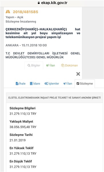 8 Temmuz'da Tekirdağ’ın Çorlu ilçesinde 25 kişinin hayatını kaybettiği tren faciasının yaşandığı hattın ihalesini 31.279.110,13 TL teklif veren Elsitel Elektromekanik İnşaat A.Ş kazandı.