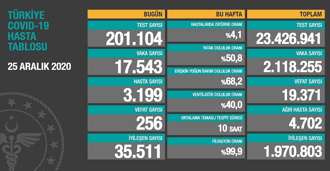 Covid_19 Türkiye'de 25 Aralık'ta 256 toplamda 19.371 can aldı