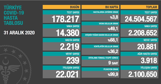Covid_19 Türkiye'de 31 Aralık'ta 239 toplamda 20.881 can aldı