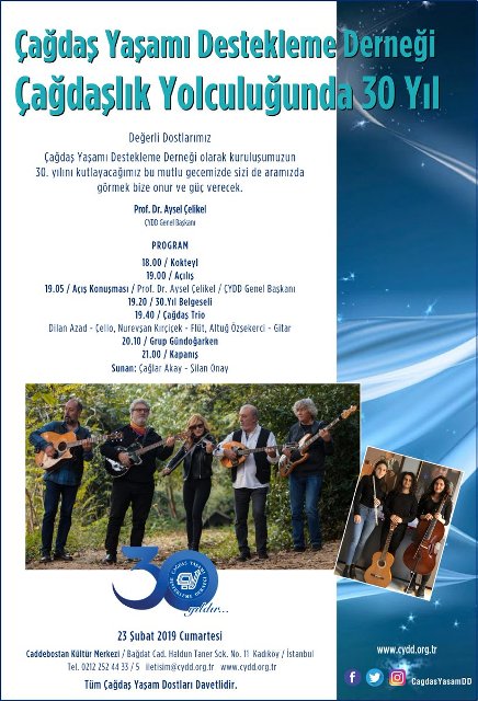 Çağdaş Yaşamı Destekleme Derneği, kuruluşunun 30. yılını 23 Şubat'ta Caddebostan Kültür Merkezi'nde düzenleyeceği törenle kutluyor.