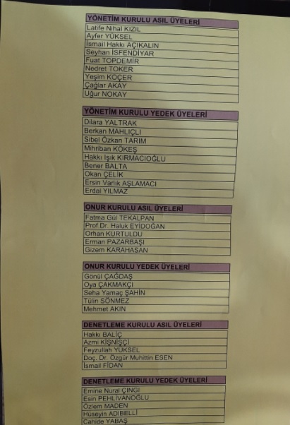 Bugün gerçekleşen kongrede sandıklar 17.00'de açıldı. Blok liste ile seçime gidildi. Latife Nihal Kızıl'ın listesi 134 oy alırken, Prof. Dr Ayşe Yüksel'in Listesi 147 oy aldı. Prof. Dr. Ayşe Yüksel yeniden Genel Başkan seçildi.