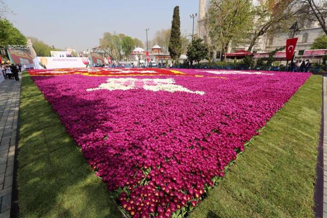 Dünyanın en büyük lale halısı Sultanahmet’te sergileniyor