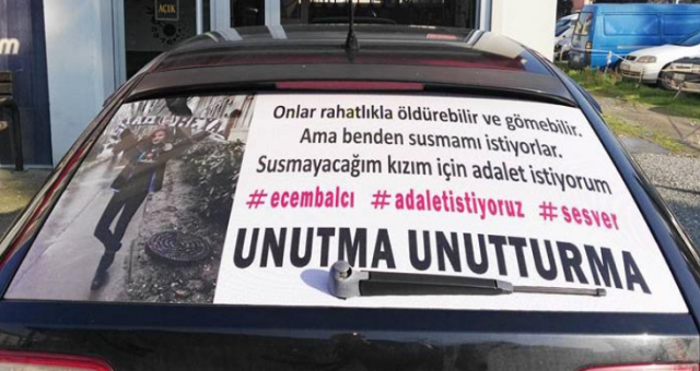 Gökhan Balcı, aracının arka camına kızının fotoğrafını yapıştırarak, 'Onlar rahatlıkla öldürebilir ve gömebilir. Ama benden susmamı istiyorlar. Susmayacağım kızım için adalet istiyorum. Unutma unutturma' yazdırdı.