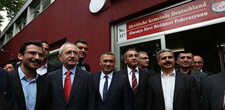 CHP Genel Başkanı Kemal Kılıçdaroğlu, Köln’de Avrupa Alevi Birlikleri Konfederasyonu (AABK) Genel Merkezi'ni ziyaret etti. Kılıçdaroğlu burada yaklaşık iki saat kaldı. Kılıçdaroğlu basına kapalı yapılan toplantıdan sonra AABK Genel Merkezi'nden hiçbir açıklama yapmadan ayrıldı.