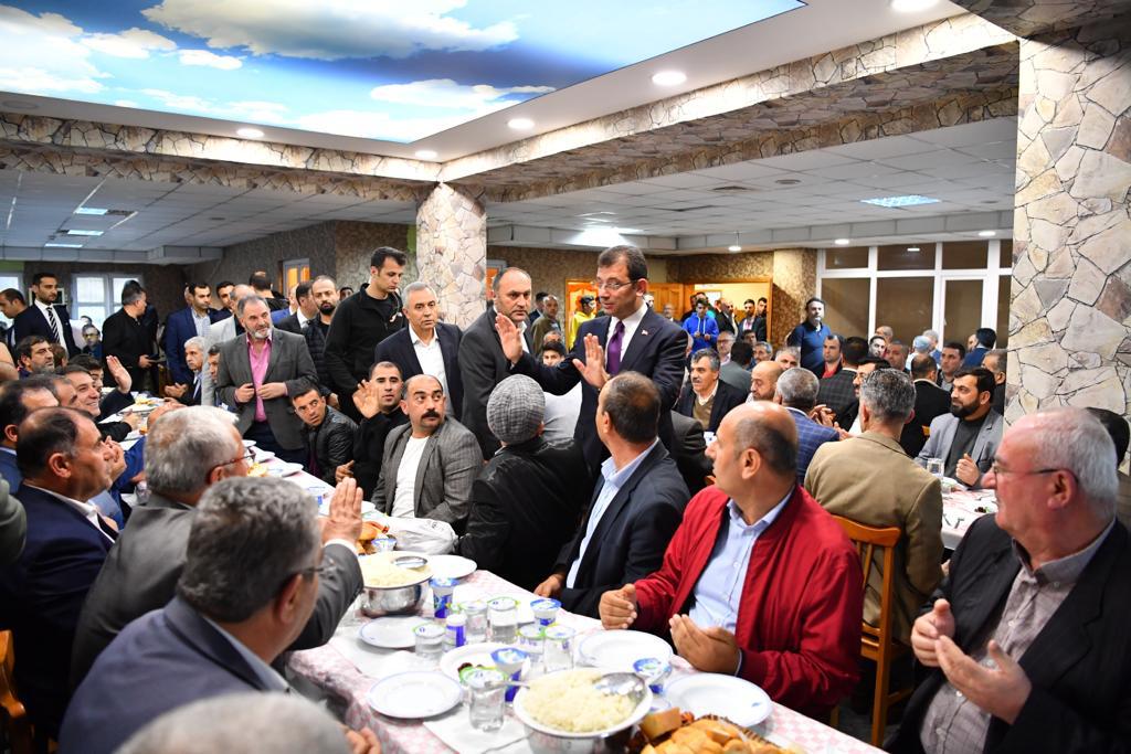 İmamoğlu, kısa bir konuşmasında: ‘‘Dua eden hocamıza teşekkür ediyorum. Herhangi bir insana kötülük etmeden yol yürümenin yollarını anlattı bize. Ramazan, kendimize geldiğimiz, çevremizdeki insanları hissettiğimiz bir ay. Ramazan, paylaşma ve sevgi ayı. Sevgimizi, iyiliklerimizi paylaşırsak sevgiyi büyütebiliriz. Kul hakkından ve kötülüklerden uzak, iyilikle Ramazan’ı yaşayalım. İstanbul’u gezmeye, sofralarına eşlik etmeye çalışan bir kardeşinizim. Allah, kardeşliğimizi baki kılsın. Kol kola, omuz omuza bir hayat geçirelim. Şehrimize ve birbirimize sahip çıkacağız. Bu şehrin mazlumu olsun istemiyoruz. 16 milyon insanın paylaştığı bir şehir olsun istiyoruz. Hepinizin çocuğunu çocuğumuz, ailesini ailemiz gibi görüp şehre hizmet etmek istiyoruz. Böyle yaparsak İstanbul, Türkiye huzur bulur. Bu şehrin kıymetini bilmeli, geçmişine saygı duymalı, geleceğine sahip çıkmalıyız. Yönetici olarak tek bir gün hürmette sıkıntı olmaz. Sorunların çözümü için, elimizden geleni yapacağız’’ dedi...