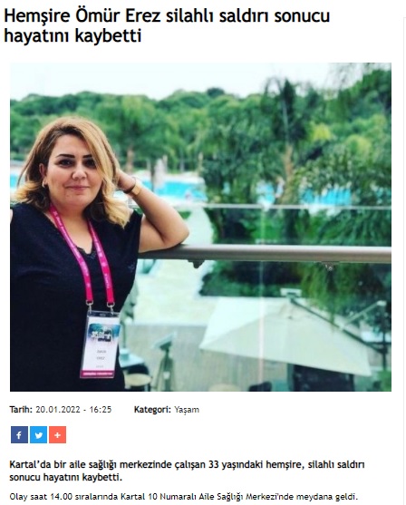 "Bir sağlık çalışanına, bir kadına yapılan bu saldırıyı aklımız almıyor, vicdanımıza sığmıyor. Kartal'da bir aile sağlığı merkezinde, silahlı saldırı sonucu hayatını kaybeden hemşire #ÖmürErez'e Allah'tan rahmet, yakınları ve sevenlerine başsağlığı diliyorum."