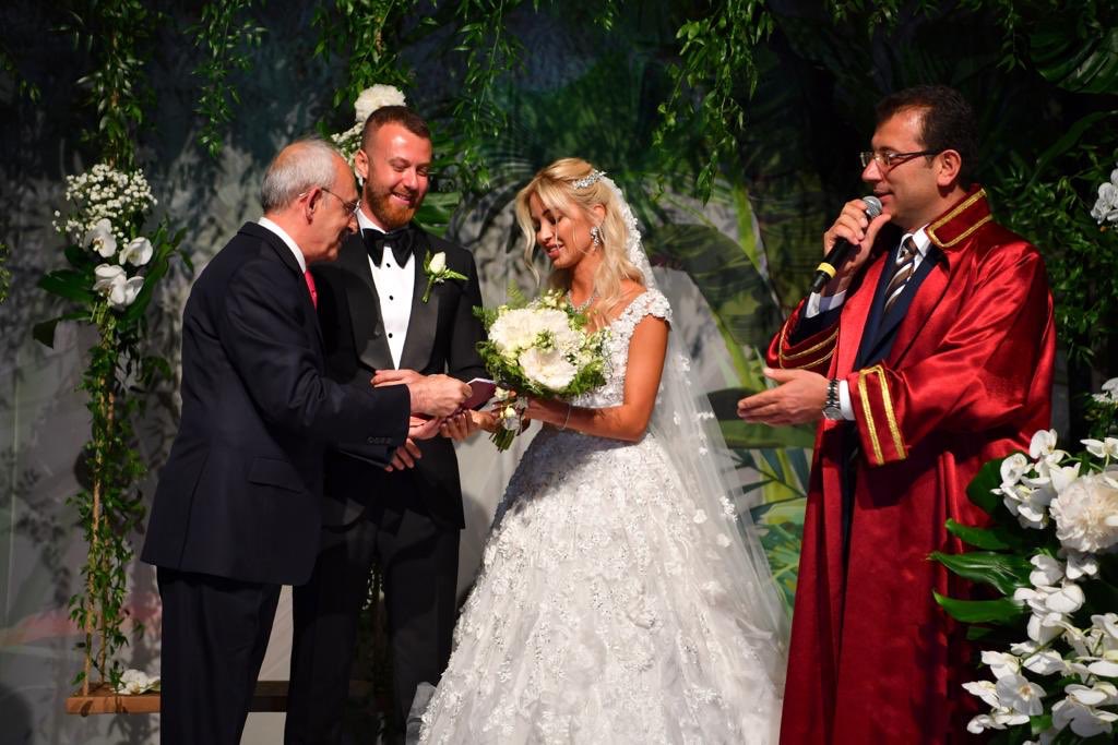 Gelin ve damadın şahitleri CHP Genel Başkanı Kemal Kılıçdaroğlu, TBMM Meclis Başkanvekili Celal Adan, Fenerbahçe Spor Kulübü Başkanı Ali Koç ve Anadolu Grubu Onursal Başkanı Kamil Yazıcı da çifte tanıklık ettiklerini beyan edince İmamoğlu, çiftin nikahını kıydı.