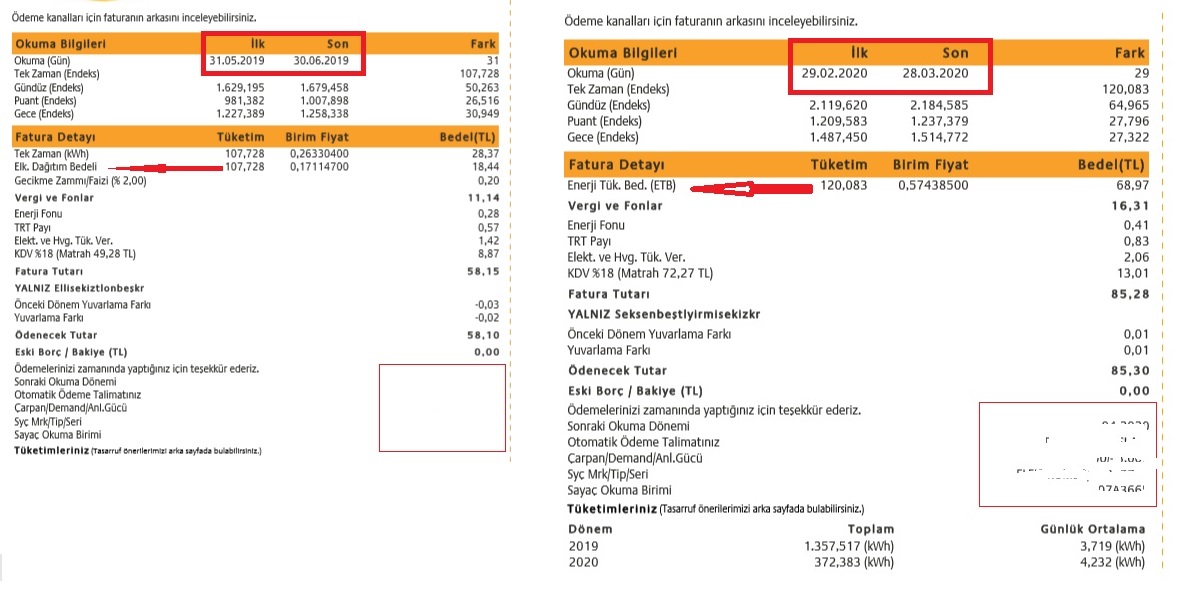 “Elektrik en son Ekim 2019’da zamlandı. Faturalar için yapılan mevzuat değişikliğinden ve zamlardan önce ‘elektrik tüketim bedeli’ 0,263304 TL’di. ‘Dağıtım bedeli’ olarak da 0,17114700 TL yazılıdır. Ancak bugün vatandaşa gönderilen faturalarda ‘dağıtım bedeli’ kalemi yok. Enerji tüketim bedeli olarak da 0,574385 TL yazıyor. Elektrik en son Ekim 2019’da zamlandı ve birim fiyatı bugün de geçerli olan fiyat yani 0, 348202 TL. Dağıtım bedeli ise 0,225831 TL. Neredeyse 2 katı! Bugün bu bedeli vatandaş faturalarında göremediği gibi ‘elektriğe zam geldi’ gibi duyuran da yok. Yani şeffaflıktan uzak vatandaş tamamen şirketlerin insafına bırakılmış bir durumda.”