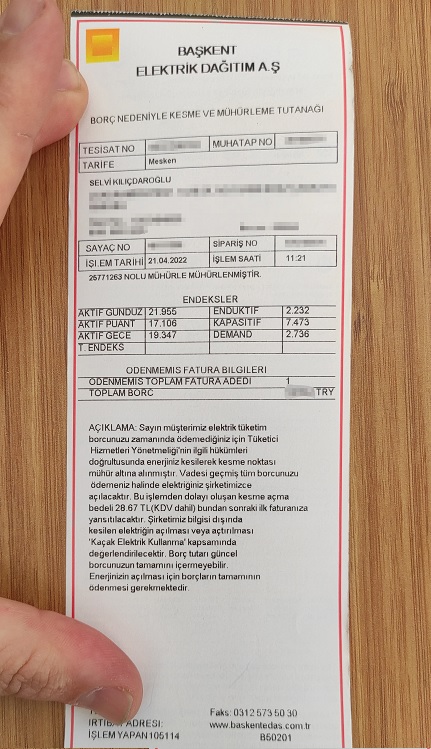 Dün gittiğiniz evde yapılan tespitler ve abonelik kayıtlarına göre ilgili abonenin 23.04.2022 itibariyle borcundan dolayı elektriğinin kesik olmadığı tespit edilmiştir."