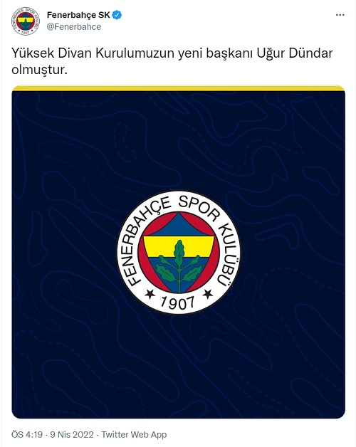 Fenerbahçe Spor Kulübü resmi twitter hesabından paylaştı.