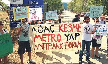 ODTÜ ormanını katledecek otoyolun şantiyesi, 30 Temmuz’da izinleri daha tamamlanmadan, ruhsatsız ve yasadışı olarak başladı. Bunun üzerine Yüzüncüyıl ve Anıtpark forumu, otoyol projesi eylemlerini başlattı“Yol yapıyoruz, HES yapıyoruz, alışveriş merkezi ve otel yapıyoruz... Bunlar hâlâ neden arıza çıkarıyor? Neden sokaklara dökülüyor?”