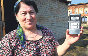Nehrin birkaç yüz metre ötesinde, eskiden öğrenci yurdu olarak kullanılan binanın hemen yanında paslı bir tabela var. Meali, “Tehlikeli bölge. Sadece yetkililer girebilir”. Ancak 100 metre ötedeki bir evde yaşayanlar var. Çeçenistan göçmeni Gilani Denbayev ve karısı Zuhra, bir Amerikalı gazetecinin hediye ettiği Geiger aletini ellerinden düşürmüyor.