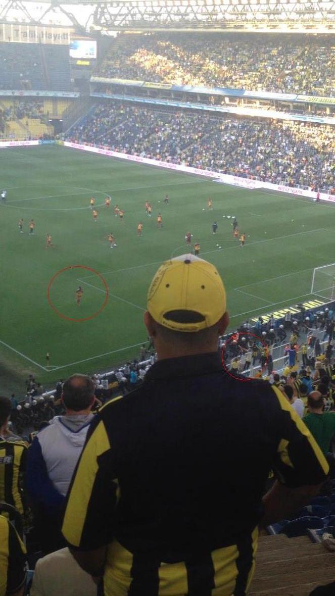 Ancak daha sonra Türk Telekom tribününden bir taraftarın çektiği görüntüler sosyal medyayı salladı. Bu görüntülerde G.Saraylı futbolcular sahada ısınırken bir taraftarın elinde görünenin muz olduğu belirtiliyor.