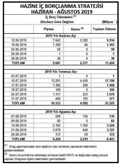 Hazine'nin Haziran-Temmuz-Ağustos dönemi iç borçlanma stratejisi şöyle: