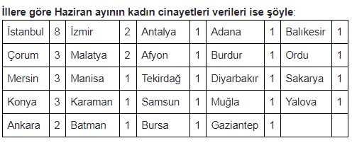 Kadın Cinayetlerini Durduracağız Platformu, 2019 Haziran Ayı Kadın Cinayetleri Raporu'nu açıkladı. Buna göre Haziran ayında erkekler tarafından 40 kadın öldürüldü, cinsel şiddet ve çocuk istismarı ise devam ediyor.