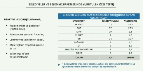 Teftişler, sadece bir siyasi partiye yönelik değildir. Tam tersi, iktidarda bulunan, AK Partili belediyelere özel teftiş sayısı çok daha fazladır.