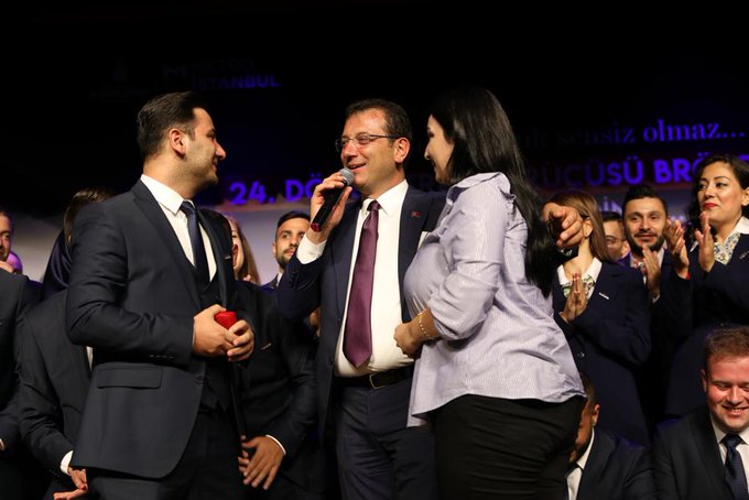 İmamoğlu, katılımcıların 30 Ağustos Zafer Bayramı’nı kutladıktan sonra bröve teslim törenine geçildi. Önce 4 kadın sürücüye brövelerini veren İmamoğlu, ardından 62 erkek sürücünün belgelerini kendilerine sundu. Ardından toplu fotoğraf çekimine geçildi. Bu sırada ilginç bir olay yaşandı. Abdulaziz Yılmazer isimli yeni tren sürücüsü, İmamoğlu’ndan izin alarak mikrofunu istedi. Mikrofonu alan Yılmazer, “Bu iş benim ikinci hayalimdi. İlk hayalimi huzurunuzda gerçekleştirmek istiyorum” diyerek, salonda bukunan kız arkadaşı İpek Gecir’i, “Benimle evlenir misin” teklifiyle sahneye çağırdı. Gecir, büyük bir şaşkınlıkla sahneye gelirken, Yılmazer, teklifini bir kez de diz çökerek, İmamoğlu ve arkadaşlarının önünde yineledi. Yılmazer’in verdiği yüzüğü alan Gecir, salonda bulunanların alkışları altında genç sürücünün teklifini kabul etti. Müstakbel çifti tebrik eden İmamoğlu, “Nikahınızı da biz kıyalım o zaman. Acele edin de bir an önce kıyalım nikahı” dedi.