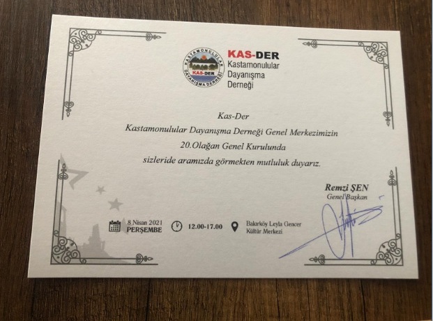 Kastamonulular Dayanışma Derneği'nin 20. Olağan Genel Kurulu 8 Nisan Perşembe günü saat 12.00-17.00'da Bakırköy Leyla Gencer Kültür Merkezi'nde gerçekleşecek.