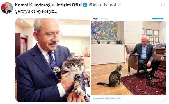 Cumhuriyet Halk Partisinin önceki Genel Başkanı Kemal Kılıçdaroğlu'nun iletişim ofisinden ŞERO meajı; Şero’yu özleyeceğiz…