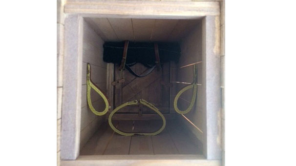 Yapılan sandığın boyutları 1.5 metreye, 0.9 metre ve 0.75 metre. Bu boyutlarda bir kutu Spiers'in ayaklarını uzatarak oturabilmesine, ya da dizlerini bükerek yatabilmesine olanak sağlıyormuş. Sandığın her iki ucu Spiers'in istediğinde dışarı çıkabilmesini sağlyacak şekilde yapılmış ve içinde de nakliye sırasında savrulmasını önlemek için Spiers'in kendini bağlayabileceği kayışlar varmış.