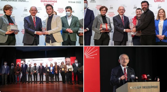 Yarışmaların kazananlarına ödülleri CHP Genel Başkanı Kılıçdaroğlu tarafından takdim edildi.Kemal Kılıçdaroğlu, törende yaptığı konuşmada, sanatın ne kadar güçlü bir argüman olduğunun herkesçe bilindiğini söyledi.