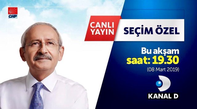 CHP Genel Başkanı Kemal Kılıçdaroğlu, bugün saat 19.30'da Kanal D canlı yayınında "Seçim Özel" programında 31 Mart yerel seçimlerine ilişkin soruları yanıtlayacak.