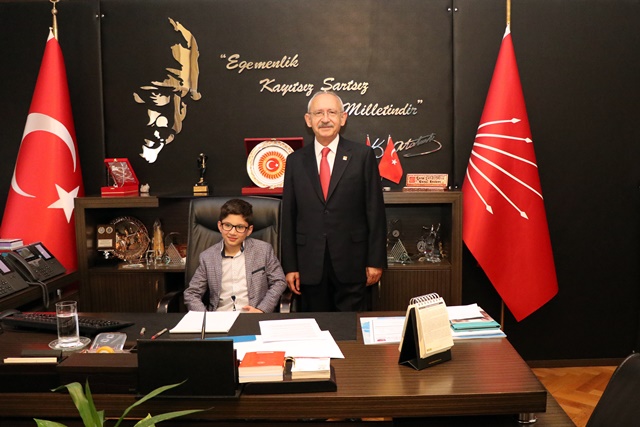 Kılıçdaroğlu, ayrıca Türkiye Sakatlar Derneği Eskişehir Şubesi üyelerini de makamında kabul etti, çocukların bayramını kutladı. Emirhan Doğan, Kılıçdaroğlu’nun koltuğuna otururken, hafta sonunda yaşanan saldırı dolayısıyla Kılıçdaroğlu’na geçmiş olsun diledi.