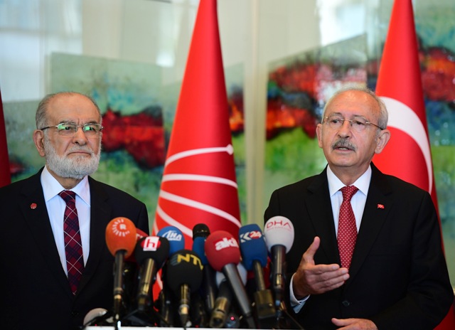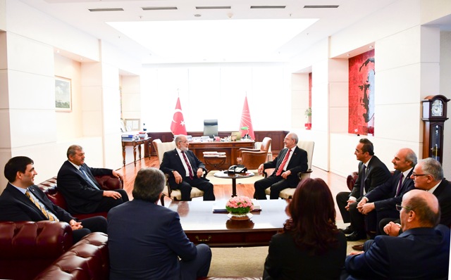 Cumhuriyet Halk Partisi Genel Başkanı Kemal Kılıçdaroğlu, Saadet Partisi Genel Başkanı Temel Karamollaoğlu ile CHP Genel Merkezinde bir araya geldi.