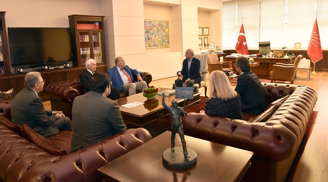 CHP Genel Başkanı Kemal Kılıçdaroğlu,Temiz Seçim Platformu Başkanı Yaşar Okuyan ve beraberindeki heyet ile parti genel merkezindeki makamında görüştü.