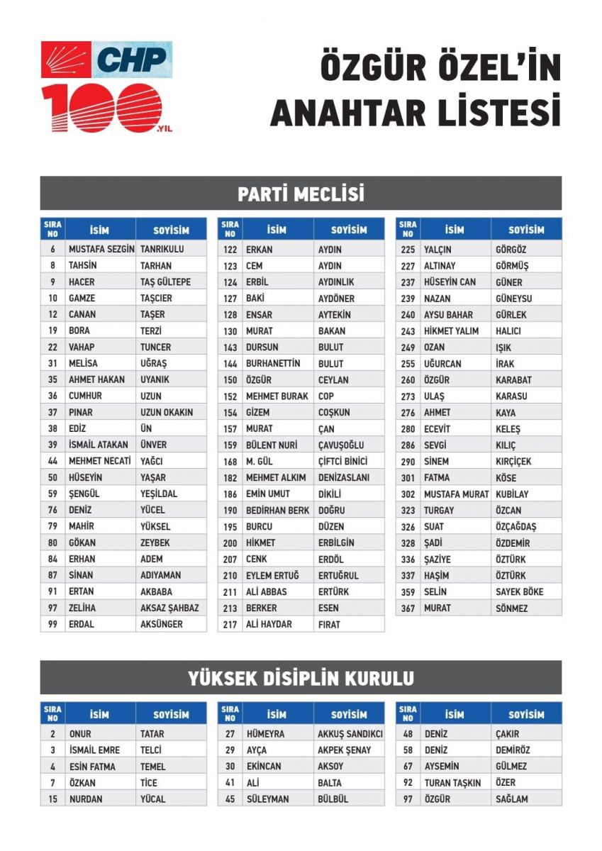 CHP Genel Başkanı Özgür Özel’in Parti Meclisi (PM) anahtar listesi belli oldu.